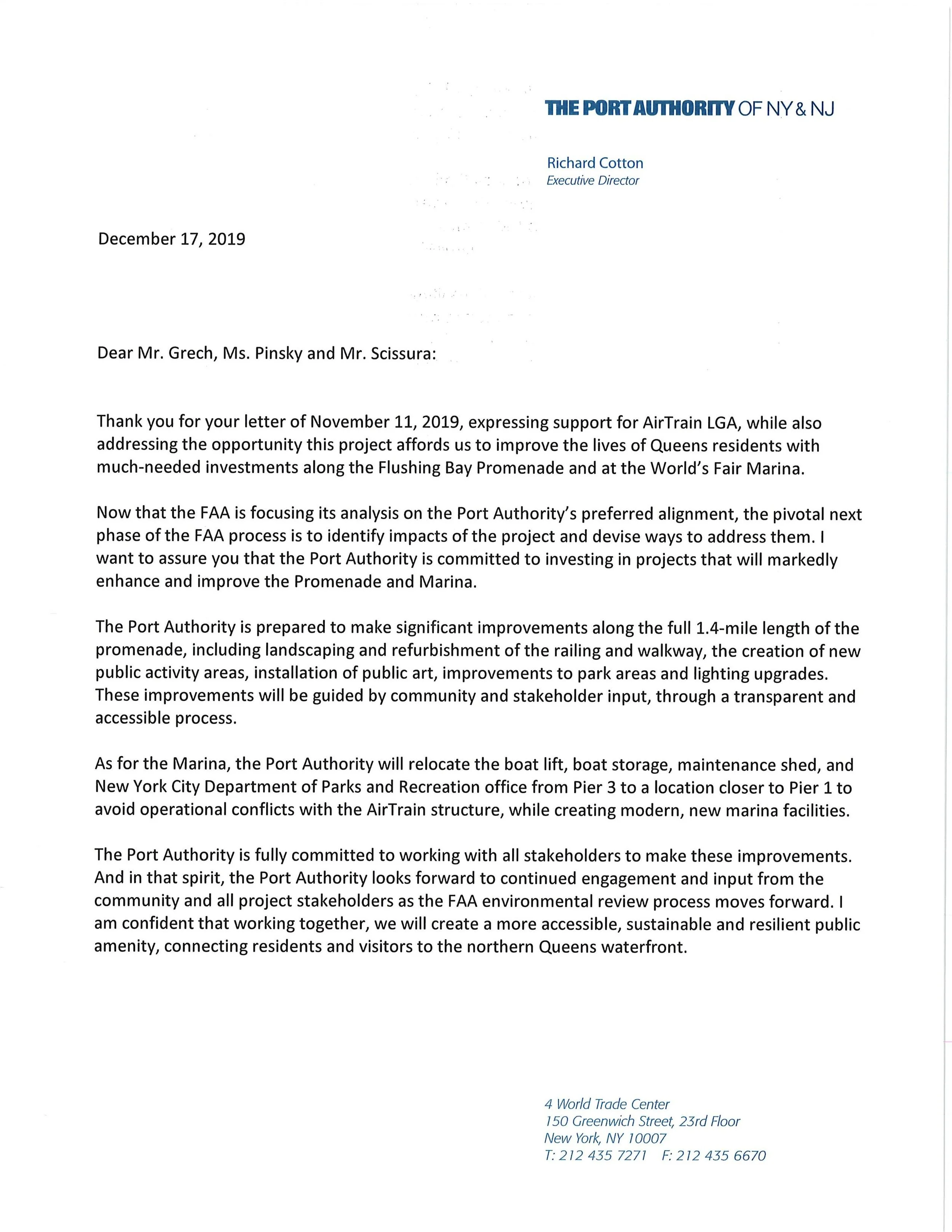 Port Authority response to A Better Way to LGA’s November 11th letter: